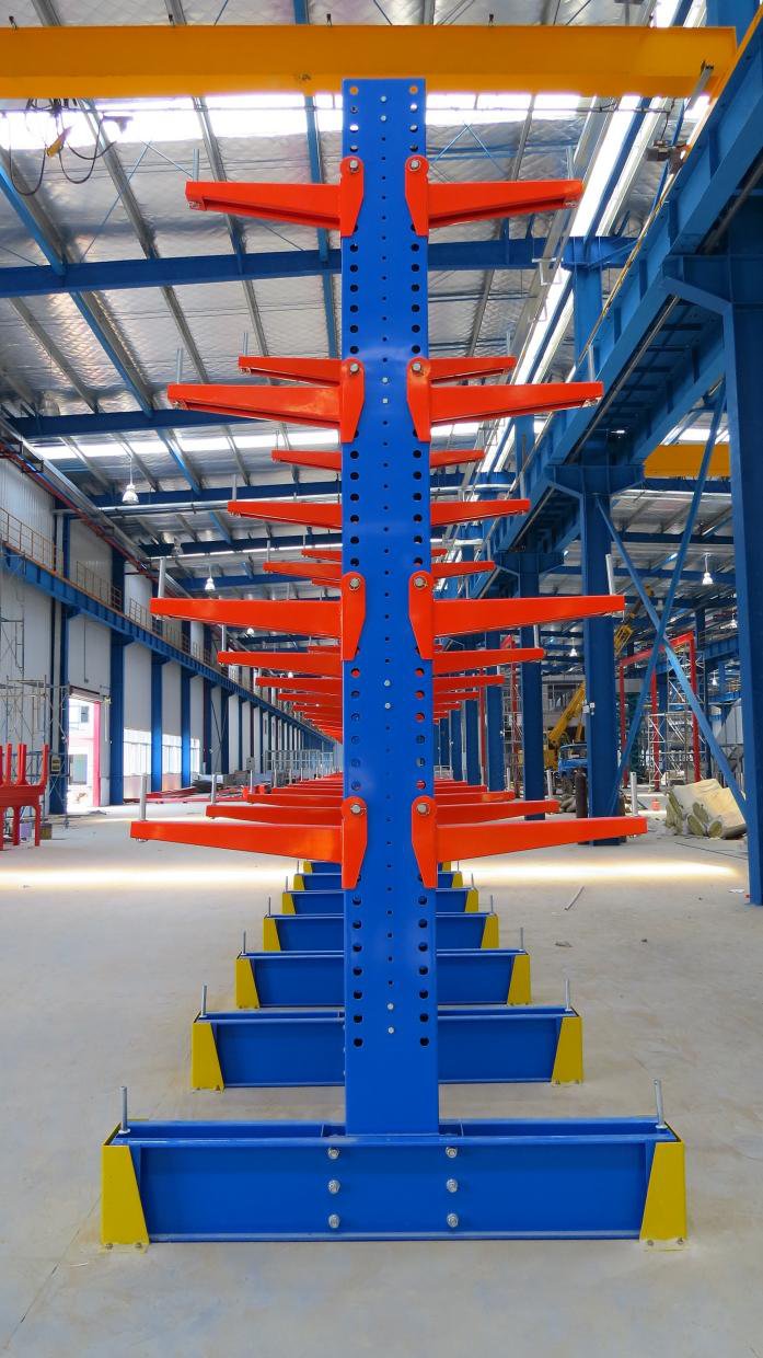 懸臂是屬于倉儲貨架類別中的一類,采用專用型材立柱,配高強度懸臂,適用于存放各種長形物料、環型物料、板材和不規則物料等。其前伸的懸臂可以是單面或雙面,具有結構輕、載重能力好的特點,單臂承重可達1000kg.特別加固的立柱結構,可以承受2000~3000kg壓力。設計背拉增加貨架整體穩定性,安裝簡易,配件齊全。組合式結構,專用型材立柱,設計背拉增加穩定性,配高強度懸臂(臂可以為單面或雙面),具結構輕巧、載重能力好、空間利用率高;加了擱板后,特別適合空間小,高度低的庫房,管理方便,視野寬闊,與普通擱板式貨架相比,利用率更高;根據承載能力可分為輕量型、中量型、重量型三種 產品特點:懸臂式貨架一般采用兩種材料制作 懸臂式貨架柱片與柱片之間采用連接桿連接,連接桿一般采用矩形管制作。為增加安全和穩定性,在連接桿上加扁鐵背拉要專用拉子可將柱片緊緊固定。 我們來了解下貨架的各個組成部分。 由立柱、底座、連桿、懸臂、擋桿組成的。 分享我們制作過的案例: |