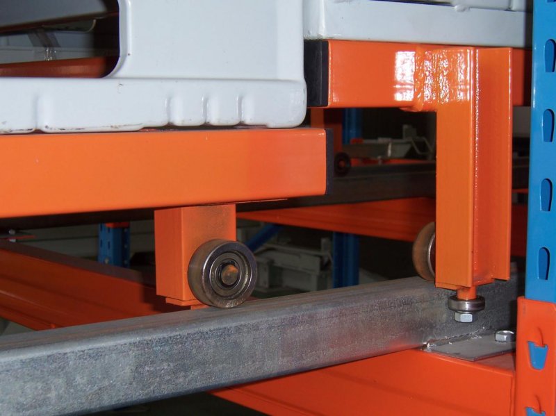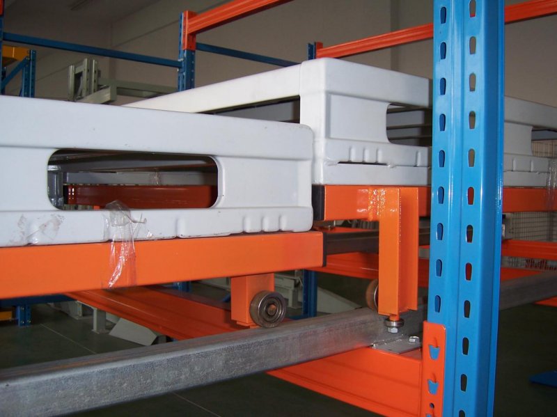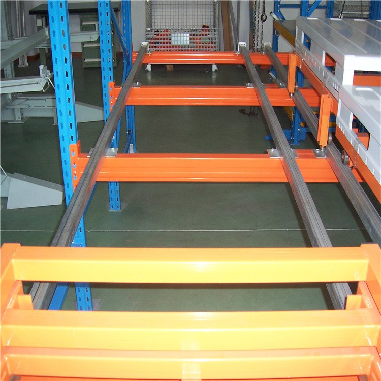 密集存儲貨架方案的壓入式貨架,是在特殊環境里,結合了橫梁貨架和駛入式貨架的優點設計出來的,產品有以下特點: