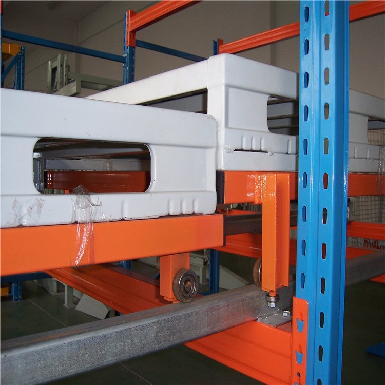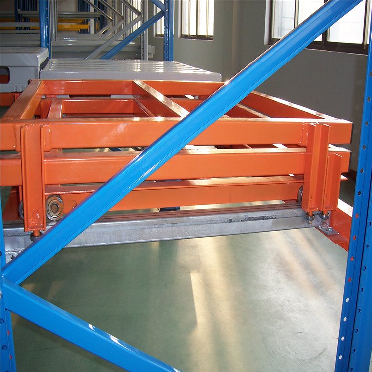 5.存儲貨物時,第一托盤的貨物會放置在更頂部的小車上。第二托盤的貨物,需要通過叉車的動力將第一托盤貨物,壓入到后端。從而解決叉車的作業距離不夠長的問題。以此類推,就可以放置3-4個托盤貨物了。 在你(ni)需(xu)要方(fang)案時,需(xu)要提供些資(zi)料方(fang)便我(wo)們了解你(ni)的需(xu)求。 1.Pallet size: