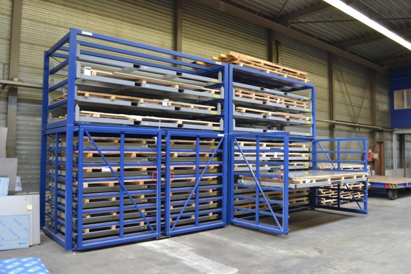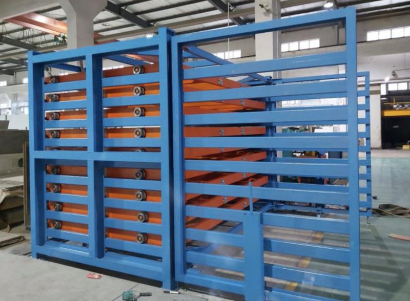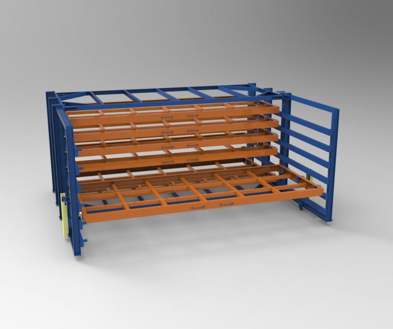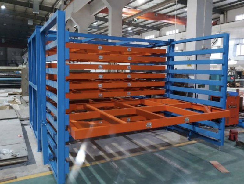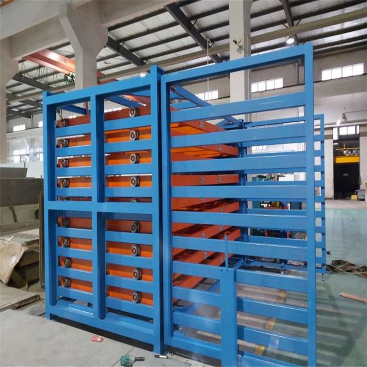 金屬板材存放貨架 板材堆放架工程項目 節省:節省大量廠房空間,抽屜式結構,可以15層存放,占地空間小,存儲量高。鋼板可以分層分類的存放在同一組貨架上,幾十種規格尺寸材質的鋼板存放在貨架上,瞬間廠房變得寬敞 整齊 明亮,抽屜式結構不需要叉車不需要工業巷道。天車存放節省人力,單人可以完成所有的操作,存取速度快,節省時間。 安全:鋼板存放在地面上占用的空間大,各種規格的鋼板都堆放在一起雜亂無章,容易磕磕絆絆,上面的鋼板還容易滑動,存在安全隱患,鋼板比較鋒利,人工存取還容易劃傷操作者,存在人員安全隱患。鋼板存放架還可以保護板材,防止鋼板在運輸中帶來損耗,特別是貴重金屬板材防止劃傷 刮傷 卷邊等情況的發生。 方便:鋼板存放架采用抽屜式結構,每層抽屜單獨拉出,方便鋼板的存取,特別是中間的鋼板也可以直接存放,不受上層或下層鋼板抽屜的影響,讓存取使用更方便。抽屜高標準拉出,操作方便。 快(kuai)捷(jie):鋼(gang)(gang)板存放(fang)架使(shi)用天車存放(fang)鋼(gang)(gang)板,存取速度快(kuai)捷(jie),鋼(gang)(gang)板直接存取,幾十種鋼(gang)(gang)板擺放(fang)在不同的(de)抽(chou)屜里,貨物一名了然,不用浪(lang)費過多的(de)時間,快(kuai)速的(de)存放(fang)所有使(shi)用的(de)鋼(gang)(gang)板,不用反(fan)復整(zheng)理挪動,讓(rang)廠房空間迅速寬(kuan)敞(chang)起來。